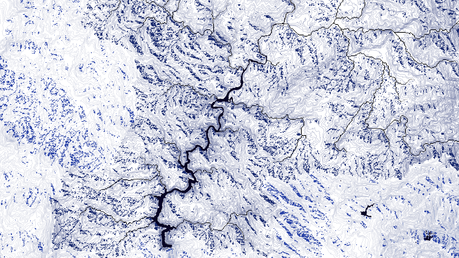 Dirección del flujo hidrológico en la zona de estudio. Cada imagen muestra una de las ocho direcciones de descenso más pronunciado, o caída máxima, de cada celda.