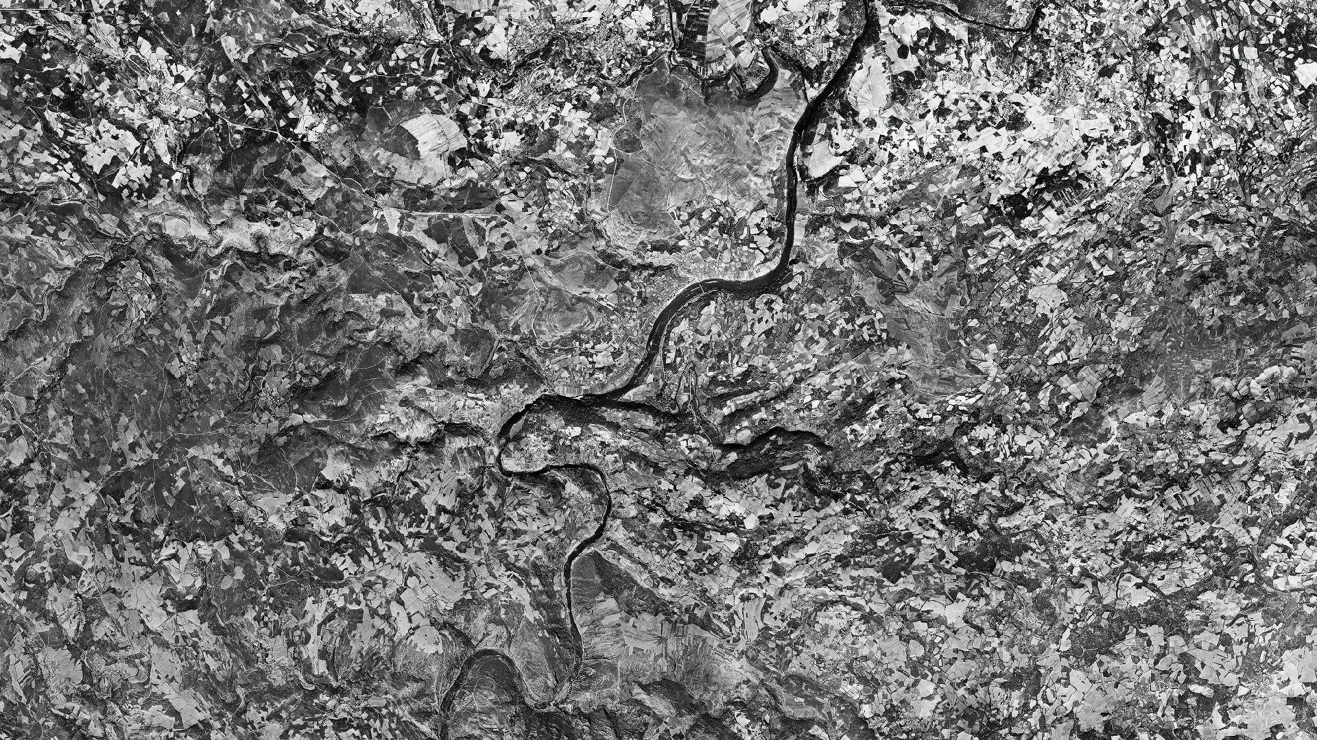 Overlay of orthophotos from the years 1956 and 2017 in the surroundings of the town of Portomarín.